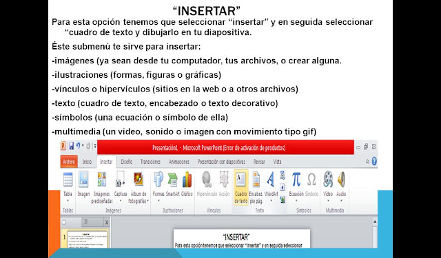Para esta opción tenemos que seleccionar “insertar” y en seguida seleccionar “cuadro de texto y dibujarlo en tu diapositiva.